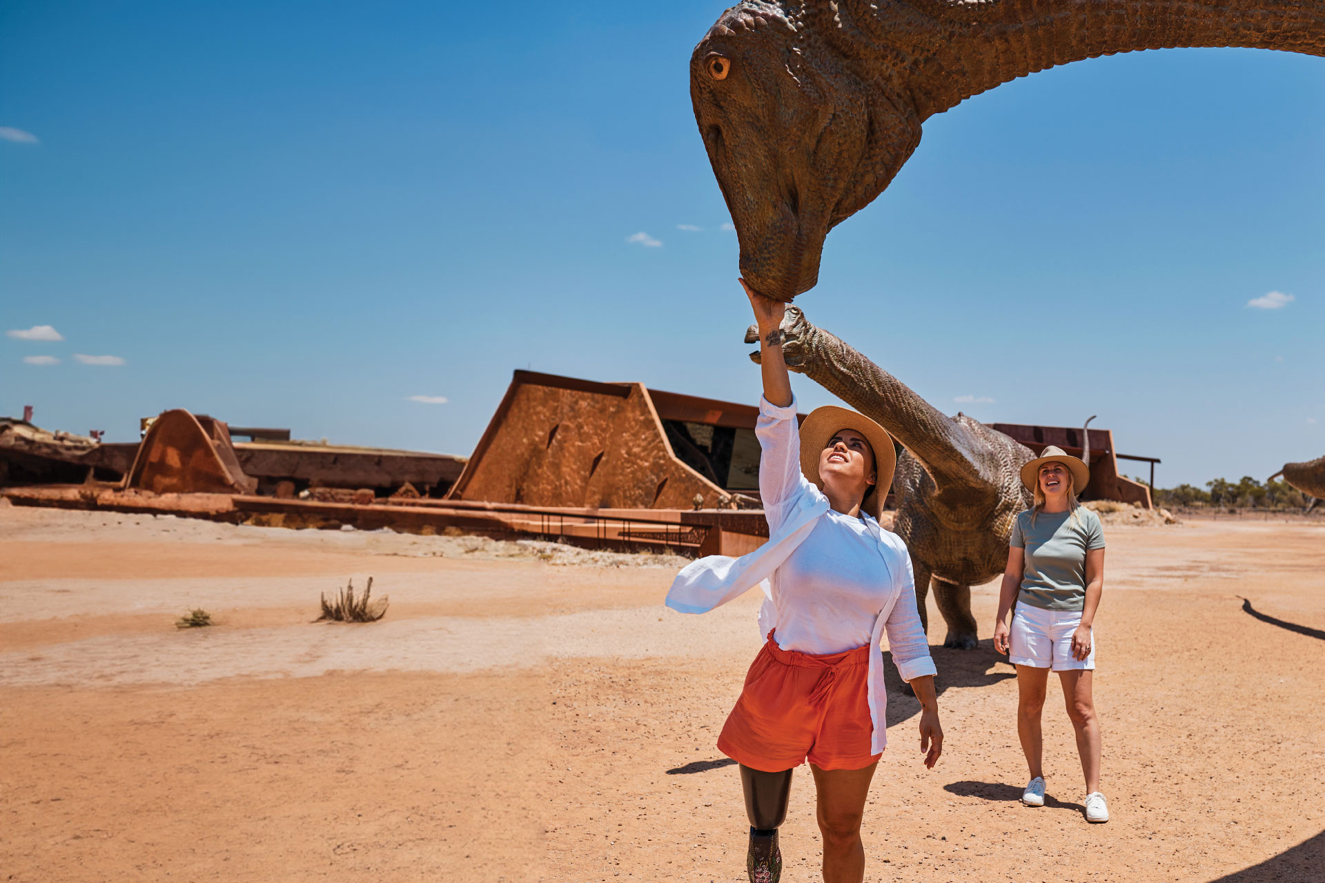 Explore the Flinders Discovery Centre to see ‘Hughie’, a seven-meter Muttaburrasaurus, and an impressive fossil collection. Experience the history of sheep production at the ‘Shearing Straggler’ exhibit. Explore Outback history and art features by following the windmill blades through Hughenden and visit the full-bodied Muttaburrasaurus replica, ‘Mutt’. Outside Hughenden, visit Mount Walker for stunning views and Porcupine Gorge National Park, often called Australia’s ‘Little Grand Canyon’. Take scenic drives along the Basalt Byway, the Eromanga Sea Byway, and the Flinders River Byway for different landscapes and experiences.